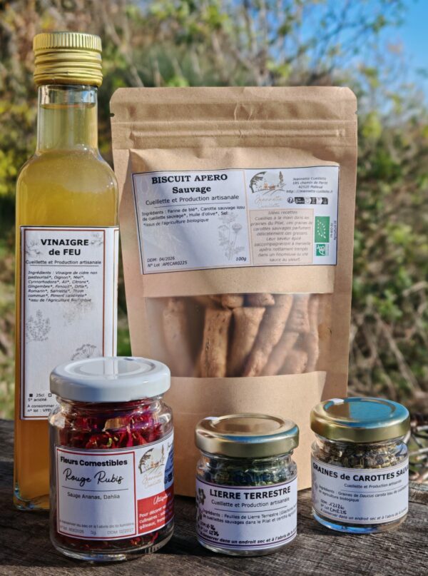 Farine de blé*, Carotte sauvage issu de cueillette sauvage*, Huile d’olive*, Sel
